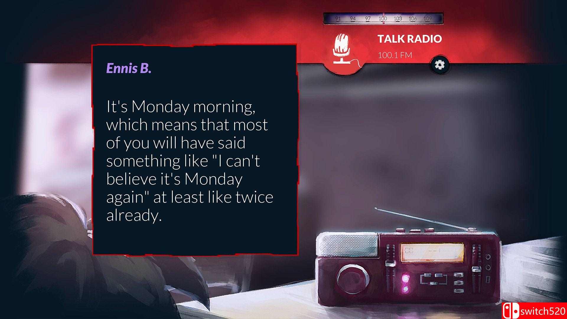 《变频电波》是一款冒险解密类(AVG)游戏,《变频电波》是一款时间循环设定下的音频谜题游戏。在游戏中,玩家可以录制、倒带时间、并广播不同片段的电台节目,用以揭露广播主持人、阴谋论者、政治人物、地下活动分子等的真相。通过重新分配信息,你将影响接下来 3 分钟的时间循环,改变新闻周期与人物命运。switch520