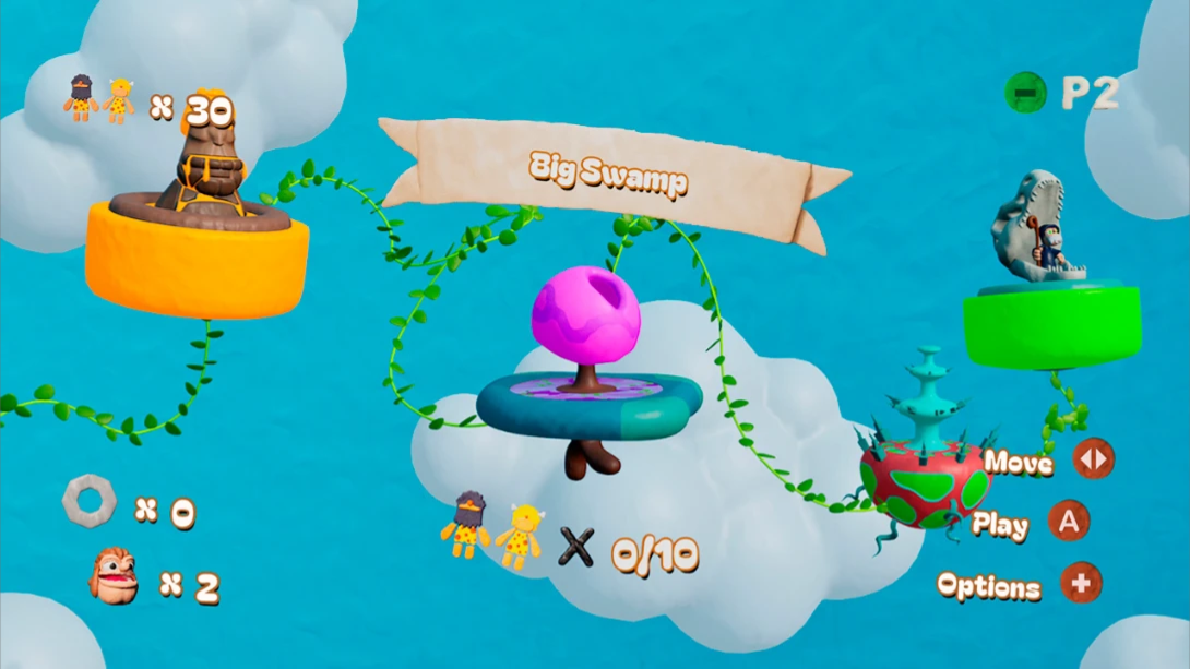 Crosak 是一款以史前世界为背景、融合多重重力机制与橡皮泥风格美术的3D平台冒险游戏,支持单人探索与双人合作,玩家将扮演原始人角色,拿起木棒穿梭于风格迥异的开放世界,挑战各类敌人与迷你任务,最终拯救被邪恶巫师 Double G 绑架的村民。